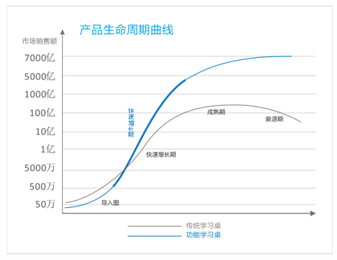 健康成长学习桌属于非周期性行业,与房地产行业兴衰无根本关联。现有中小生及学龄儿童1.6亿,每年新生儿1600万,按每个孩子一套学习桌椅计算的话,仅国内市场需求就有7000亿以上的市场容量。